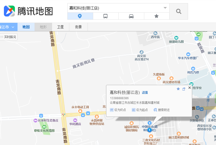 方法三:通過騰訊地圖搜索關(guān)鍵字:“麗江嘉和網(wǎng)絡(luò)科技有限公司”找到我公司。