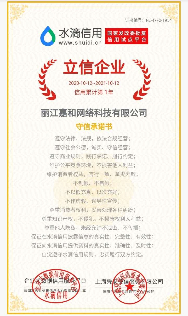 時間:2020/10/12 23:19:03 公司名:麗江嘉和網絡科技有限公司 瀏覽量: