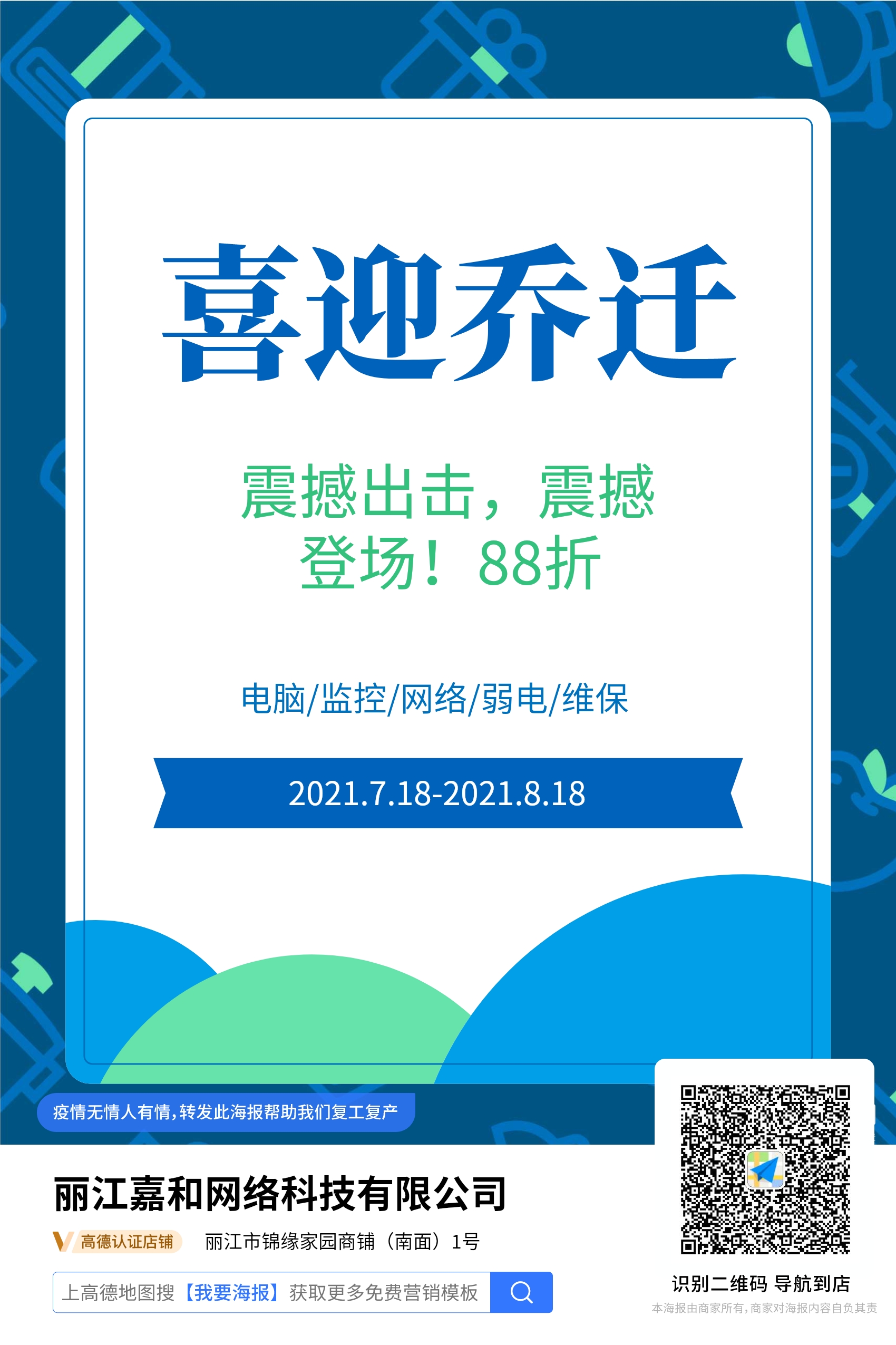 我司因業務發展需要,現公司地址搬遷至麗江市錦緣家園1號商鋪嘉和科技公司。有何疑問,歡迎來電。