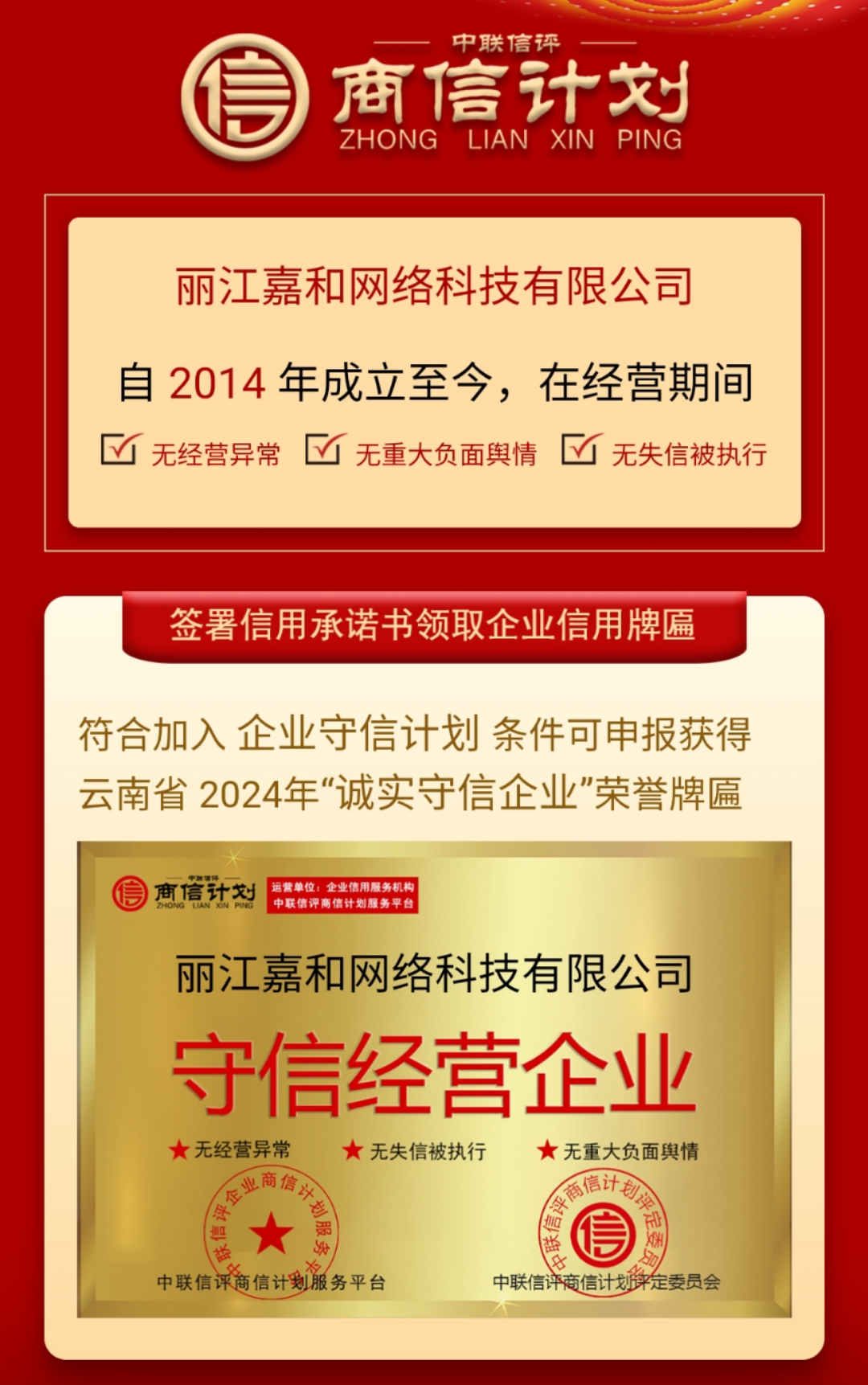 熱烈慶祝我司榮獲云南省2024誠實守信企業榮譽