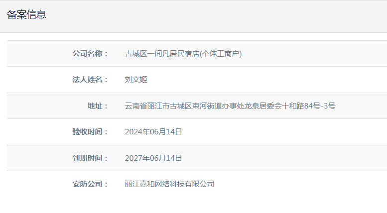 關于古城區一間凡居民宿店(個體工商戶)電子監控安防合格證下證通知
