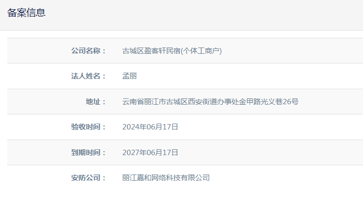 關(guān)于古城區(qū)盈客軒民宿(個(gè)體工商戶)電子監(jiān)控安防合格證下證通知