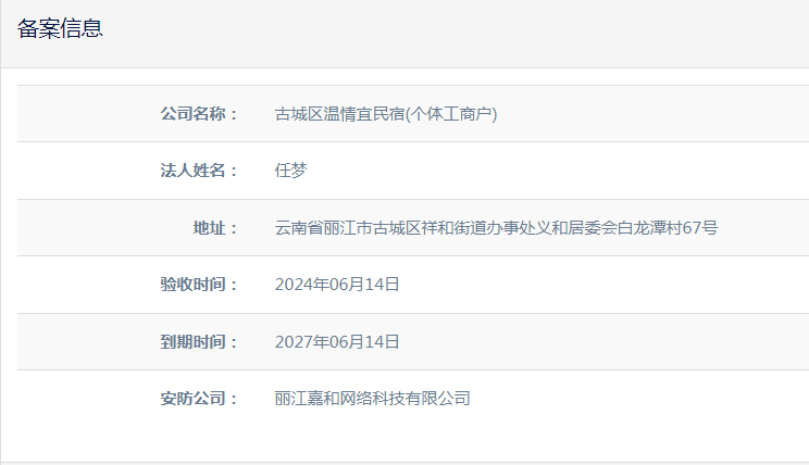 關于古城區溫情宜民宿(個體工商戶)電子監控安防合格證下證通知