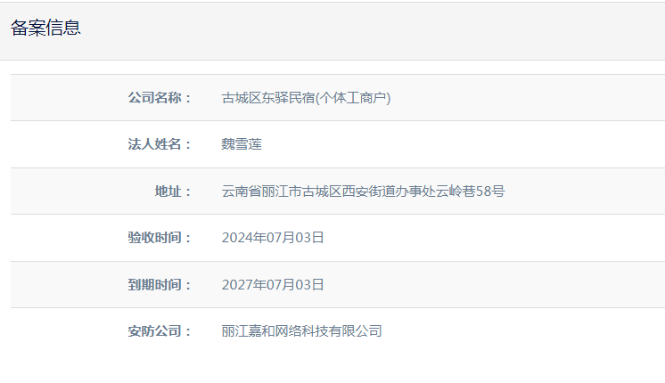 關于古城區(qū)東驛民宿(個體工商戶)電子監(jiān)控安防合格證下證通知