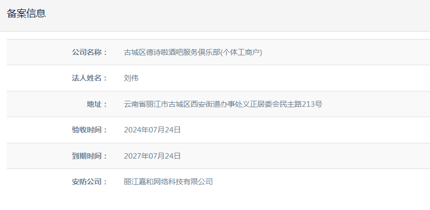 關于古城區(qū)德詩啦酒吧服務俱樂部(個體工商戶)電子監(jiān)控安防合格證下證通知