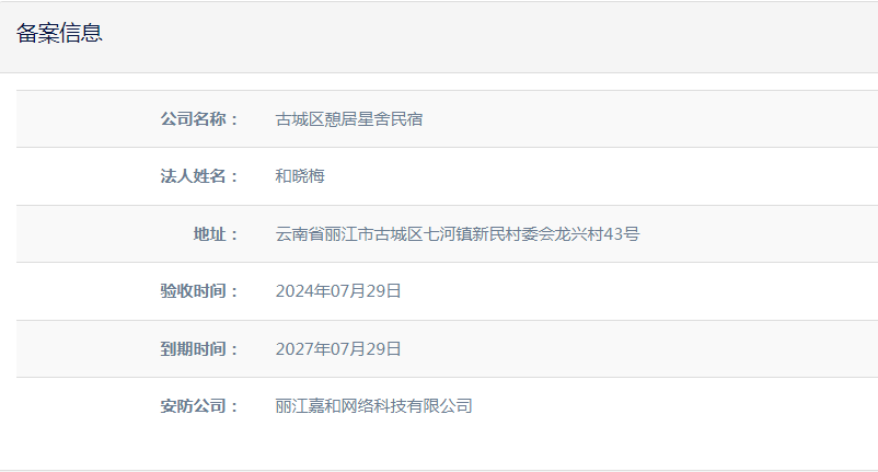 關(guān)于古城區(qū)憩居星舍民宿電子監(jiān)控安防合格證下證通知