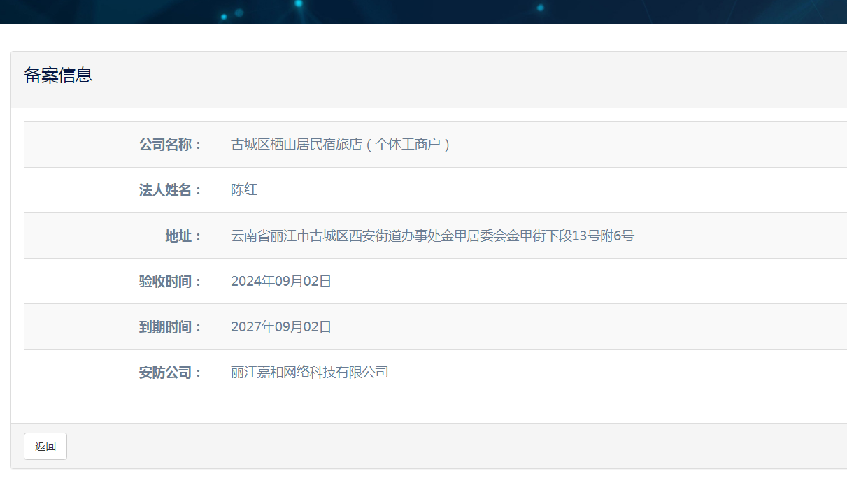 關于古城區棲山居民宿旅店(個體工商戶)電子監控安防合格證下證通知