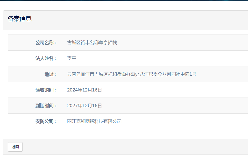 關于古城區裕豐名邸尊享驛棧電子監控安防合格證下證通知