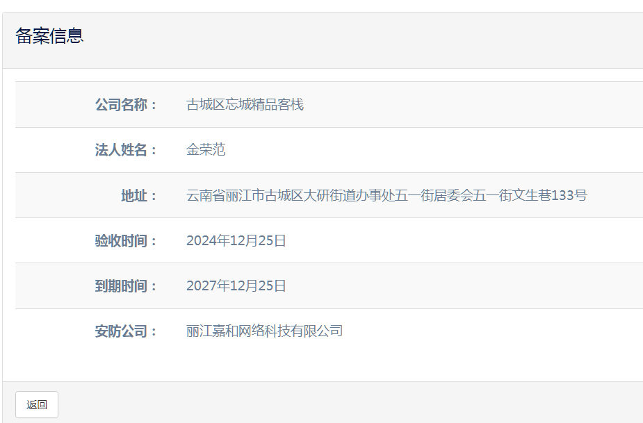 關(guān)于古城區(qū)忘城精品客棧電子監(jiān)控安防合格證下證通知