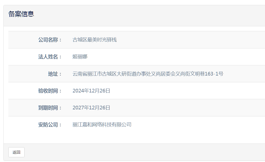 關于古城區最美時光驛棧電子監控安防合格證下證通知