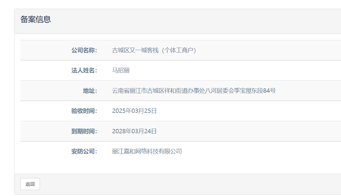 關(guān)于古城區(qū)又一城客棧(個(gè)體工商戶)電子監(jiān)控安防合格證下證通知