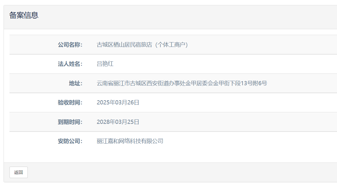 關于古城區棲山居民宿旅店(個體工商戶)電子監控安防合格證下證通知