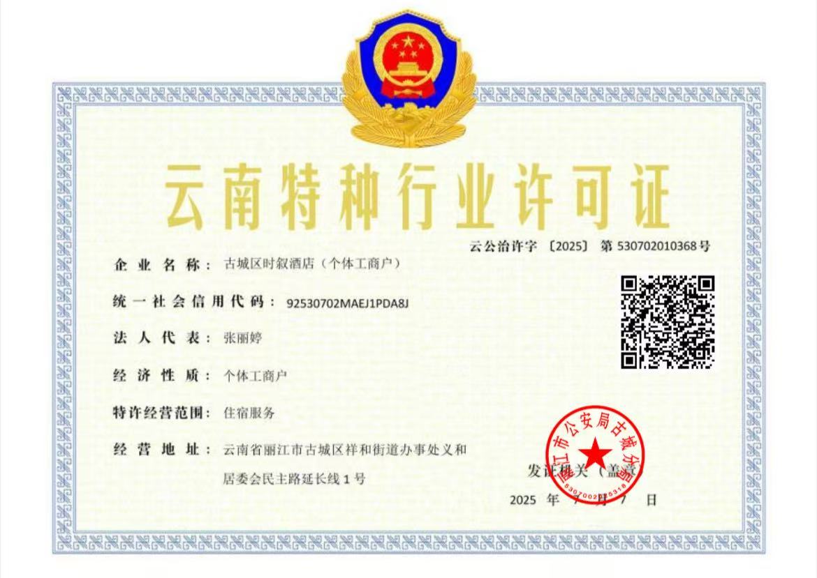 關于古城區時敘酒店(個體工商戶)電子特種行業許可證下證通知
