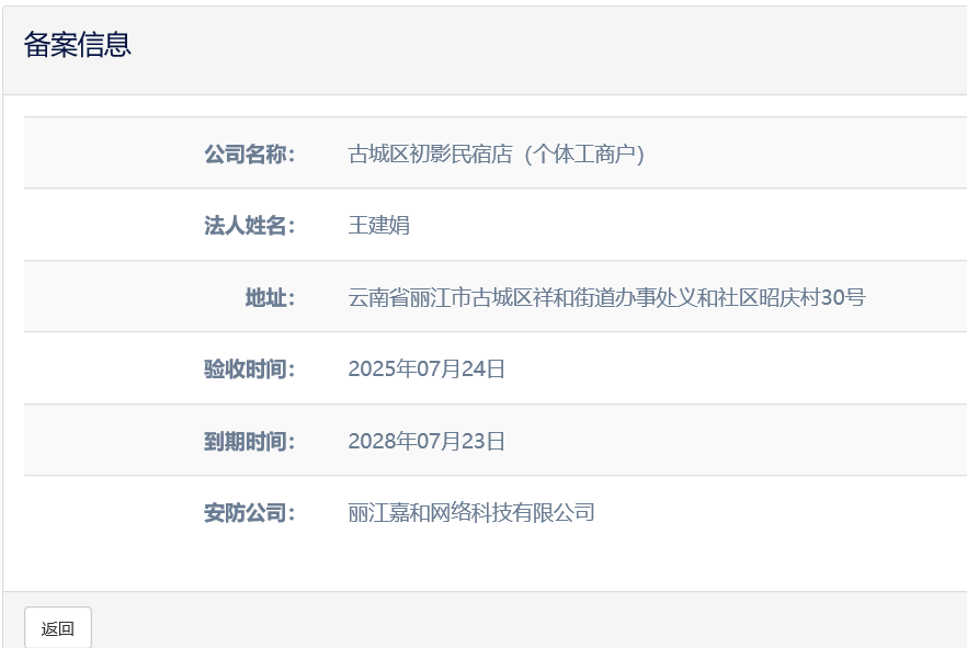 關于古城區初影民宿店(個體工商戶)電子監控安防合格證下證通知