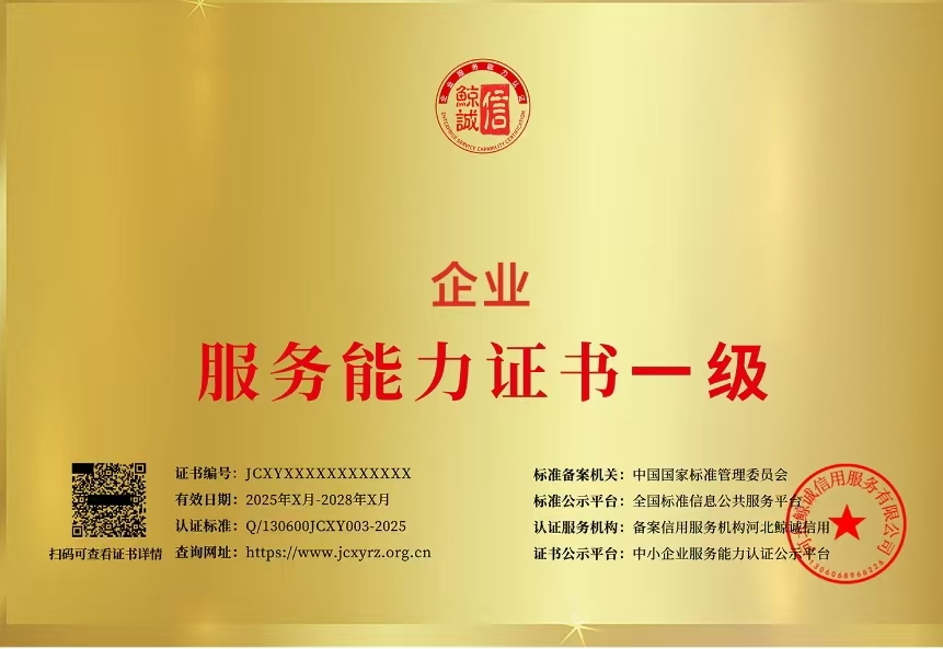 關于熱烈慶祝我司榮獲企業服務能力證書一級